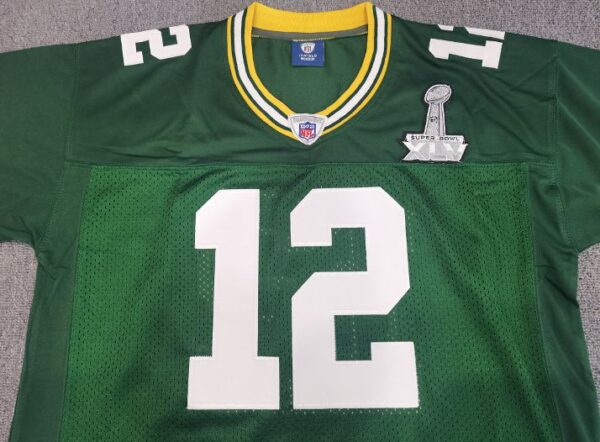 Featuring the classic Packers green and yellow design, premium stitching, and the official Super Bowl XLV patch, this jersey is the perfect tribute to Aaron Rodgers’ MVP performance.