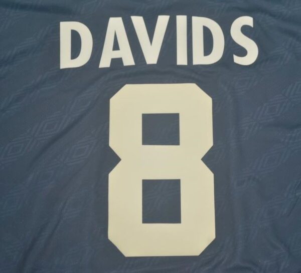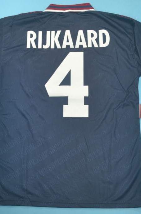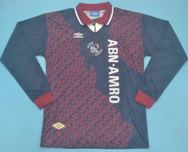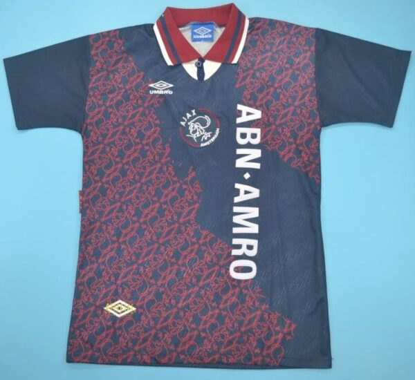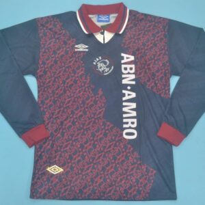 This classic dark Ajax jersey symbolizes one of the club’s most glorious eras — a season that launched the careers of stars such as Kluivert, Seedorf, Davids, Overmars, and Van der Sar.