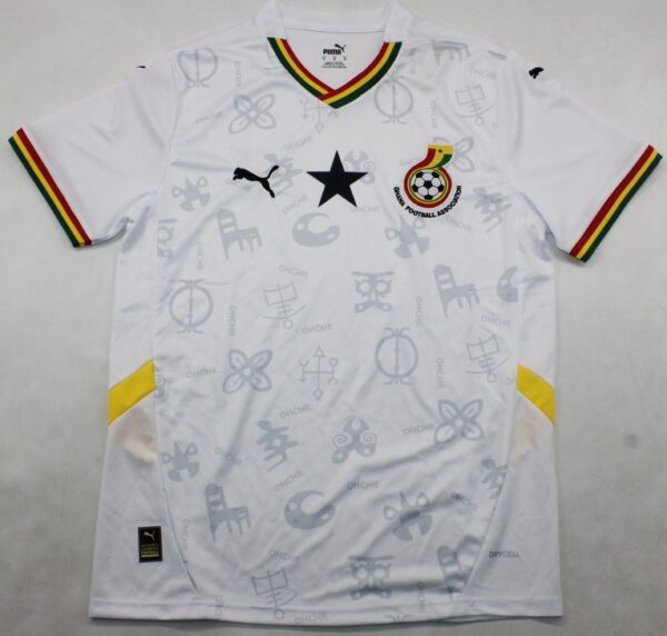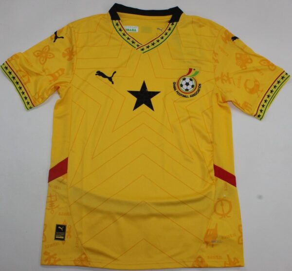 Here is Ghana‘s new soccer jersey for the next 2025 season. The colors are white for the home jersey and yellow and black for the away jersey.
