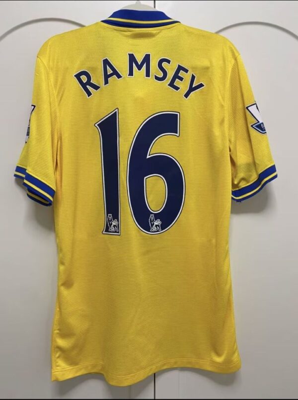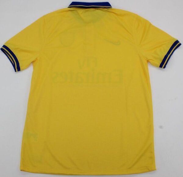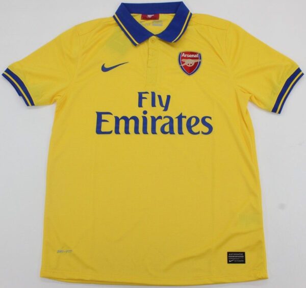 Relive the glory days of the 2013/14 Arsenal season with this Away Jersey in the classic yellow and blue colorway. This kit was worn by legends like Mesut Özil, Aaron Ramsey, and Olivier Giroud, marking an unforgettable campaign that saw Arsenal lift the FA Cup after a nine-year trophy drought!