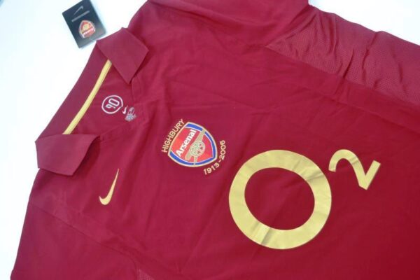 This is the legendary Arsenal home jersey worn during their final season at the historic Highbury Stadium — a ground that hosted the Gunners from 1913 to 2006.
