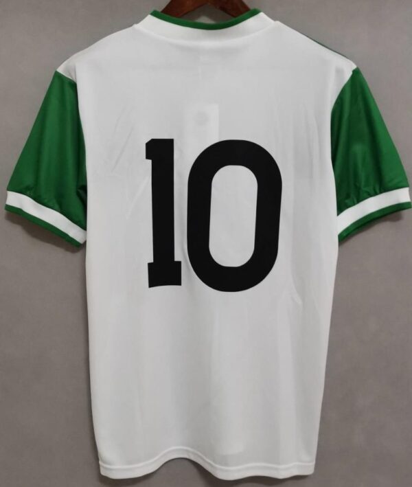 This is the white and green jersey used by Glasgow Celtic FC in the 1985-86 season. This shirt was mainly used for some away games.