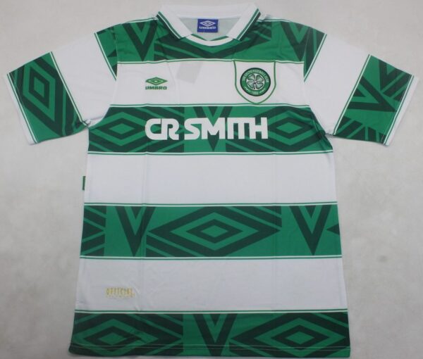 Celtic 1993–1994 home jersey with classic green-and-white hoops. Vintage replica, free global shipping, perfect for collectors and fans.