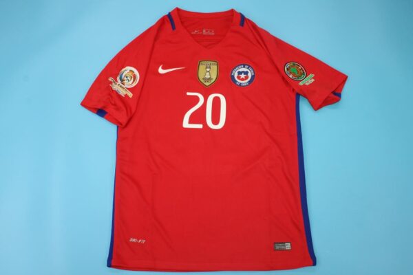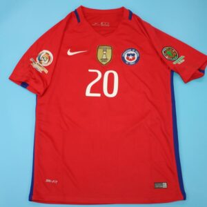 Celebrate a golden era in Chilean football with this Chile National Team Copa America 2016 Jersey, worn during one of the nation’s greatest triumphs — the Centenario tournament in the USA, where Chile lifted their second consecutive Copa America title.