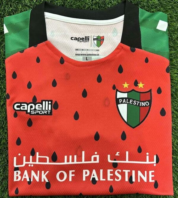 This striking shirt, worn by the team during the 2024–2025 season, proudly represents both Chilean football and Palestinian identity.