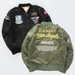 Blue Angels bomber jackets feature distinctive designs and patches inspired by the squadron’s iconic logo and aircraft. These jackets have a classic, retro look that can add a touch of aviation-inspired style to your wardrobe.