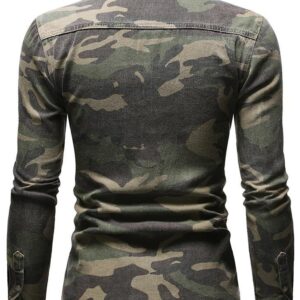 This shirt has two buttoned cargo pockets. Layering a lightweight blazer over your camouflage army shirt can create a more sophisticated outfit, suitable for events or a date night.