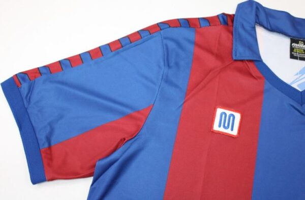 Own a piece of football history with the FC Barcelona 1982-1983 home jersey, famously worn by Diego Maradona during his short but unforgettable spell at the Camp Nou.