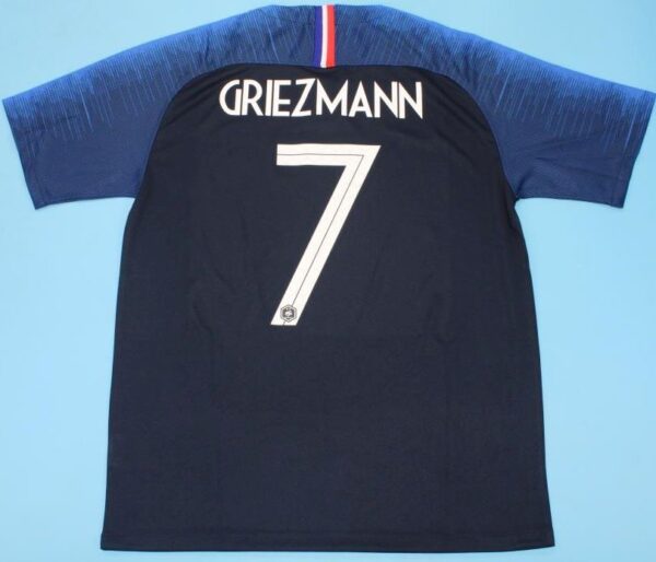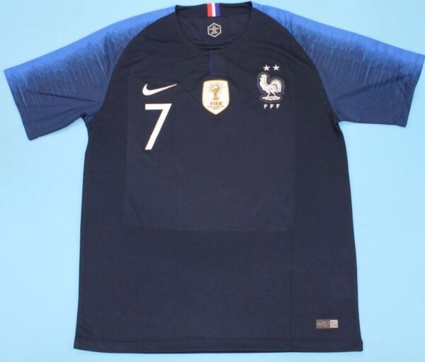 Celebrate France’s 2018 World Cup victory with this retro national team jersey! Relive Mbappé, Griezmann, and Lloris’s glory — free worldwide shipping.