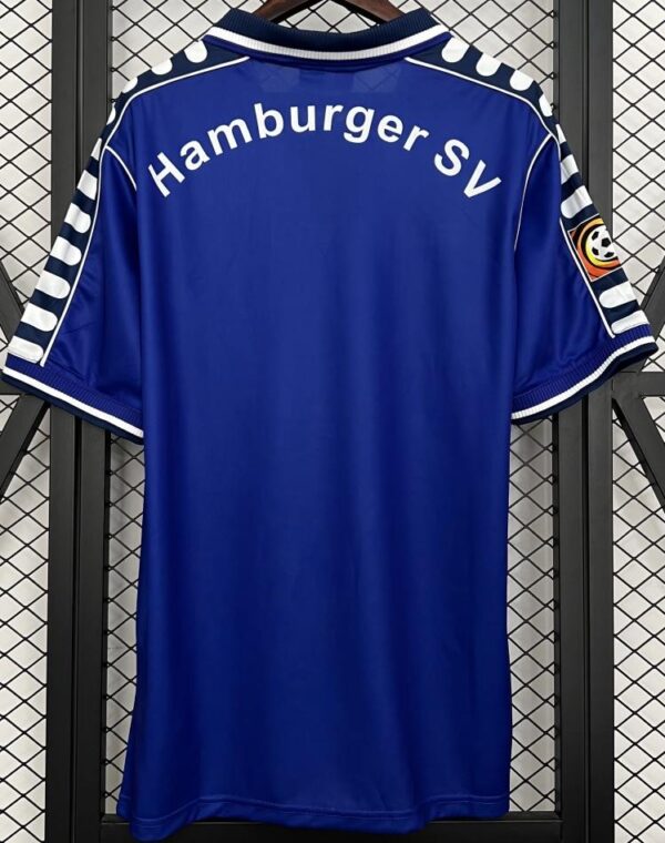 This iconic blue jersey features the classic white and navy design with the distinctive HSV crest proudly displayed. The “TV SPIELFILM” sponsor logo adds a nostalgic touch, reflecting the era’s football culture.