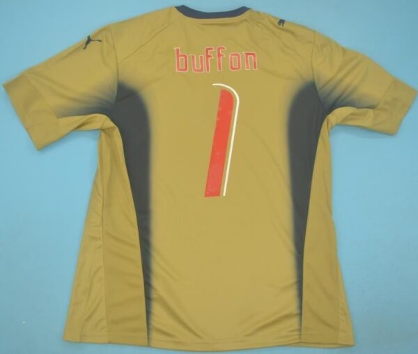 This is the stunning retro goalkeeper jersey worn by Gianluigi Buffon during the 2006 FIFA World Cup in Germany, where Italy lifted their fourth World Cup trophy after a dramatic final against France.