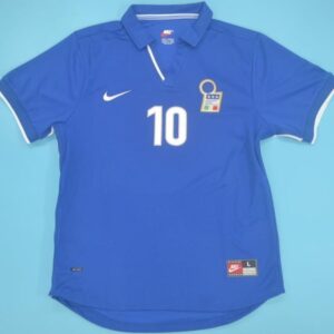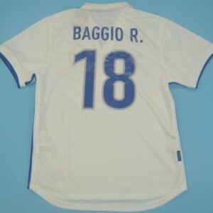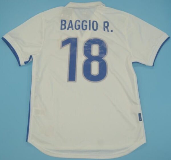 This iconic kit honors the last World Cup appearance of football giant Roberto Baggio and was worn by a team that remained unbeaten on the pitch. A valuable piece of Italian football history and a highly collectible item for fans of the Azzurri globally.
