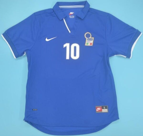 Q: Which legendary Italian player played his last World Cup in this jersey? A: Roberto Baggio played his final World Cup in the 1998 tournament.