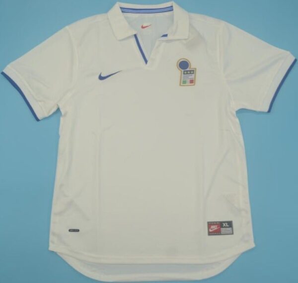 Q: What color is the Italy 1998 World Cup jersey? A: It is the traditional and beautiful Blue (Azzurri) away jersey.