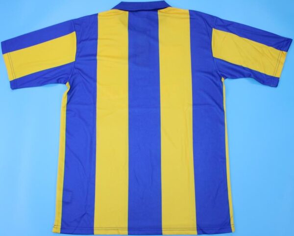 Collector’s Pride: For devoted supporters, this green and black striped shirt is a rare symbol of pride and loyalty, representing a memorable mid-90s era.