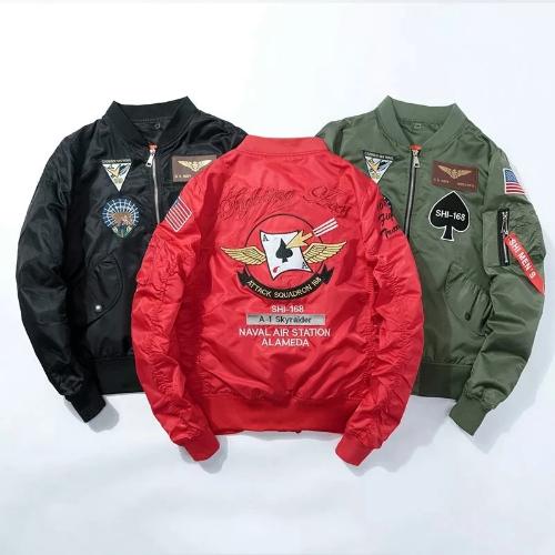 This warm and comfortable Naval Air Station Alameda MA-1 flight jacket goes with a heavy-duty front zipper.