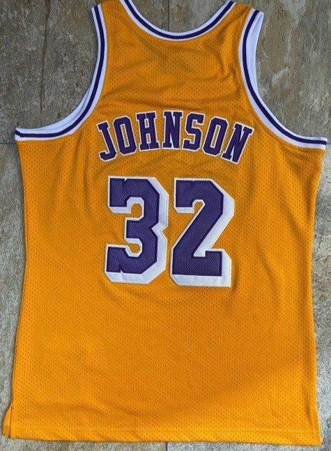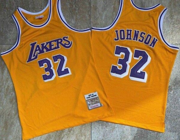 Step back into basketball history with this classic yellow and purple Lakers jersey — a faithful tribute to the season when Magic Johnson led the Los Angeles Lakers to NBA glory.