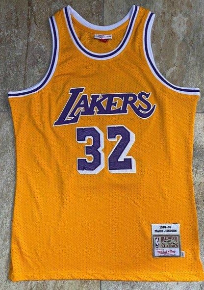 Own the legendary Magic Johnson Los Angeles Lakers retro NBA jersey from the 1984–1985 season today!