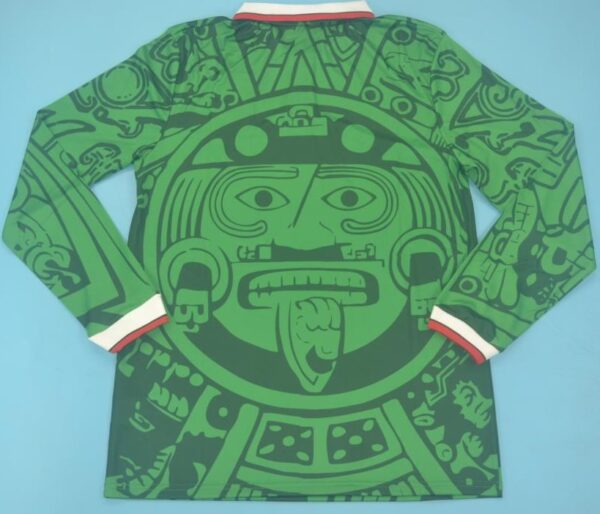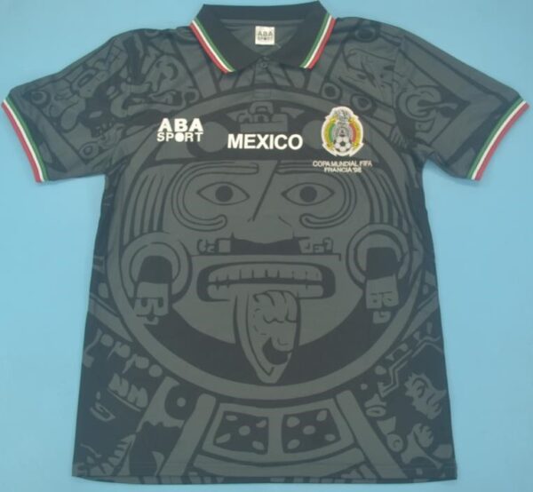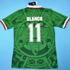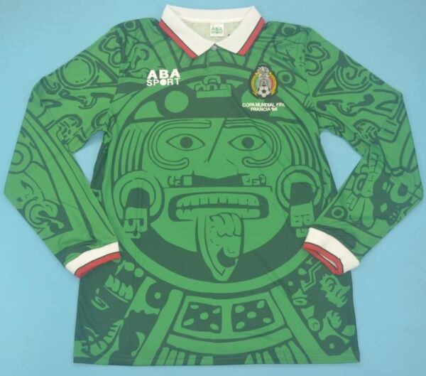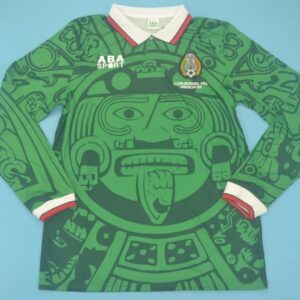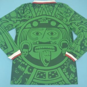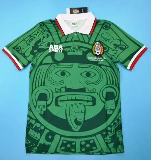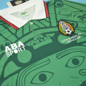 The 1998 Mexico jersey features a brilliant green base, Aztec-inspired motifs, and a stylish collared neckline — a perfect blend of history, culture, and football fashion. It’s a design that continues to captivate fans worldwide, decades later.