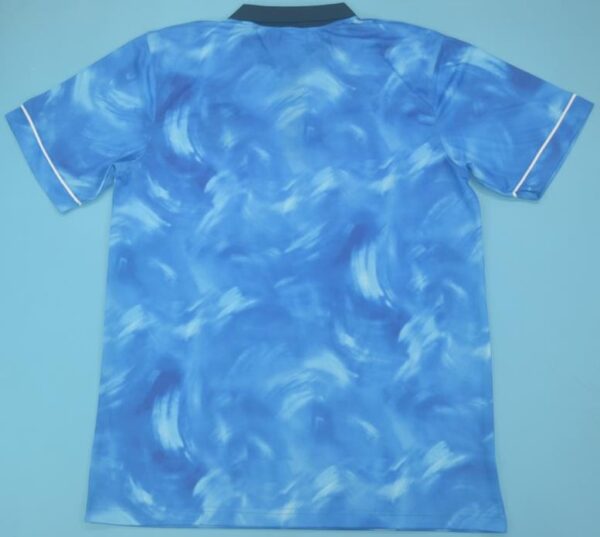 This striking blue and maroon hooped shirt captures the magic of Kevin Keegan’s “Entertainers” era, when Newcastle United thrilled fans with their fearless attacking football.