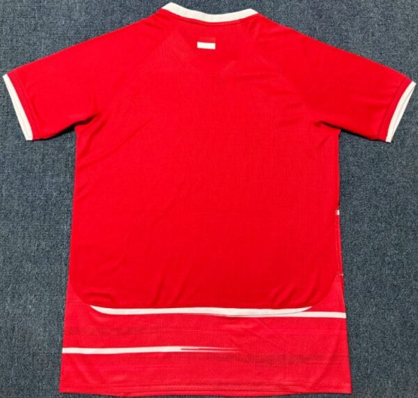 Home Jersey (Red): Features a vibrant “Brave Red” base with dynamic white horizontal streaks. This design is inspired by the legendary 1999 kits, merging a retro aesthetic with a modern, aggressive look for the “Garuda” players.