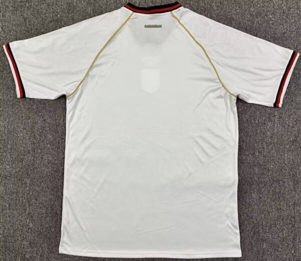 • Away (White): A sophisticated design with gold piping on the raglan sleeves and a centrally aligned crest—reminiscent of the iconic 90s aesthetic.