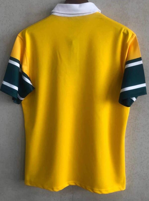 For rugby enthusiasts, the 1999 Rugby World Cup holds special meaning as it featured thrilling matches, memorable moments, and incredible talent. This yellow and green rugby jersey is part of the history of the wallabies!