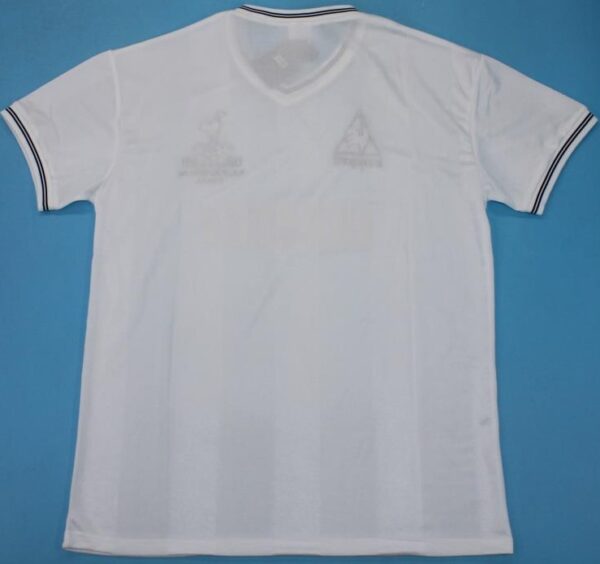 This elegant white shirt, featuring subtle pinstripes and navy trim, commemorates 100 years of Tottenham Hotspur (1882–1982) — a proud milestone in English football.