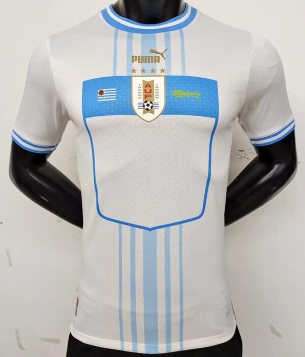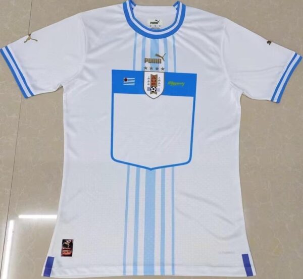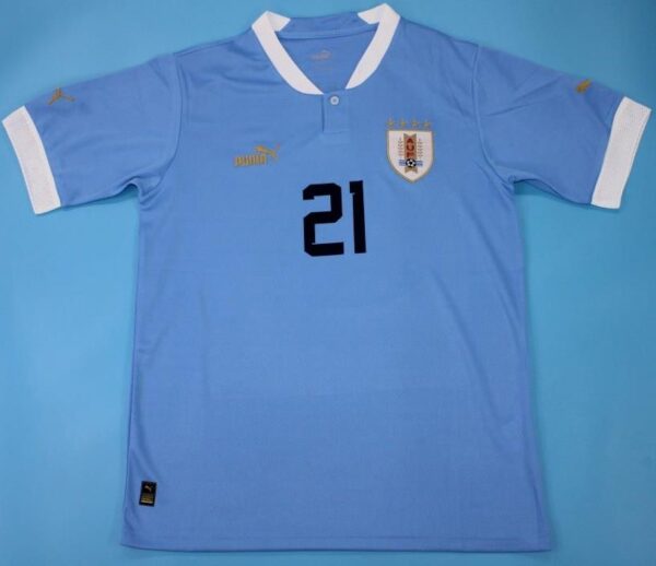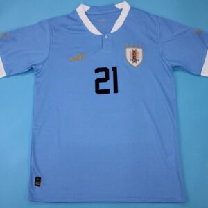 Uruguay’s 2022 World Cup squad included dynamic talents such as Federico Valverde, Rodrigo Bentancur, and Darwin Núñez, who represent the future of Uruguayan football. This jersey symbolizes a new generation of players.
