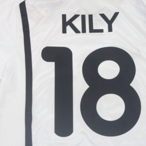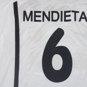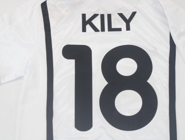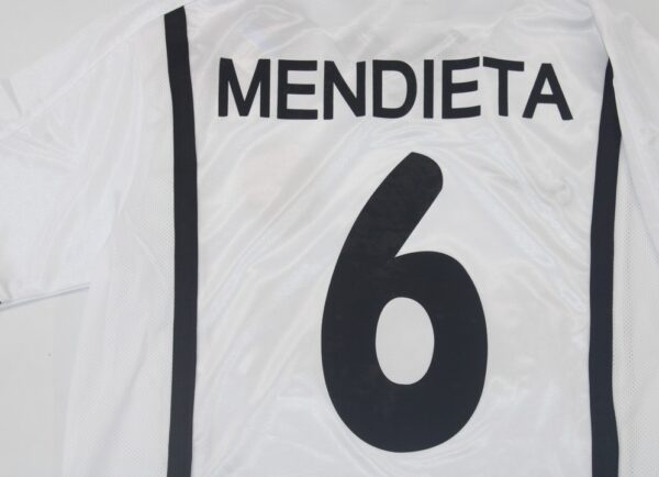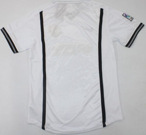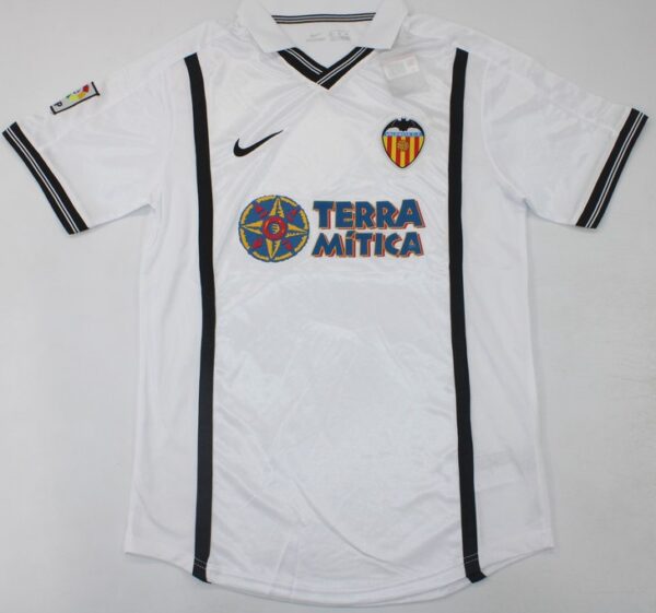 This is the white and black jersey worn by FC Valencia during the 2000-2001 season. A historic season for Valencia. Although the Spanish club finished 5th in La Liga, FC Valencia surprised the whole of Europe by reaching the Champions League final!