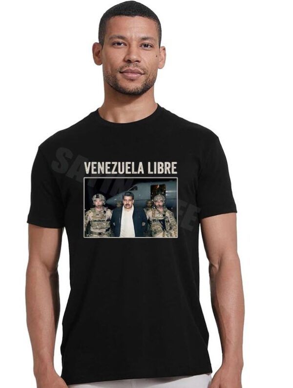 Featuring a high-fidelity image of the January 3rd capture alongside the powerful “VENEZUELA LIBRE” slogan, this shirt is more than apparel—it is a wearable historical record for the millions of Venezuelans in the diaspora celebrating a new era of liberty.