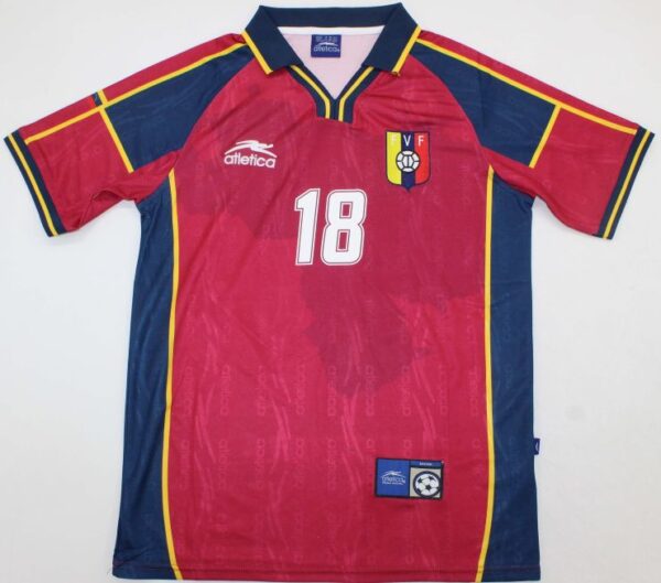 Buy the Venezuela 2000 retro soccer jersey. Classic vinotinto design from the 2002 World Cup qualifiers—rare, iconic, and perfect for collectors. Free worldwide shipping!