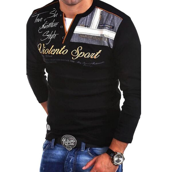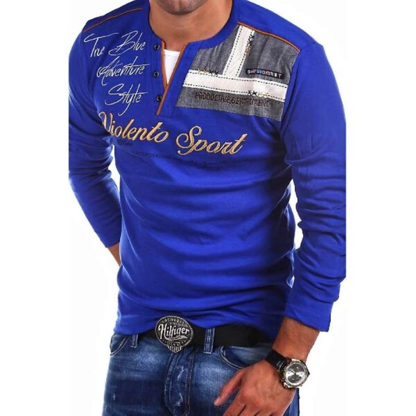 SEO Keywords: Violento Sport long sleeve t-shirt, men’s fall V-neck shirt, stylish casual wear, cotton polyester blend tee, 2023 fashion essential, elegant long sleeve top.