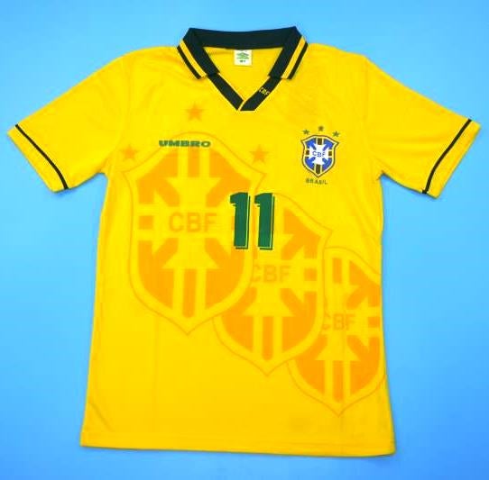Buy the Brazil 1994 World Cup Romário #11 Retro Soccer Jersey – celebrate Brazil’s legendary triumph led by Romário. Iconic yellow design, Golden Ball winner tribute. Free worldwide shipping.